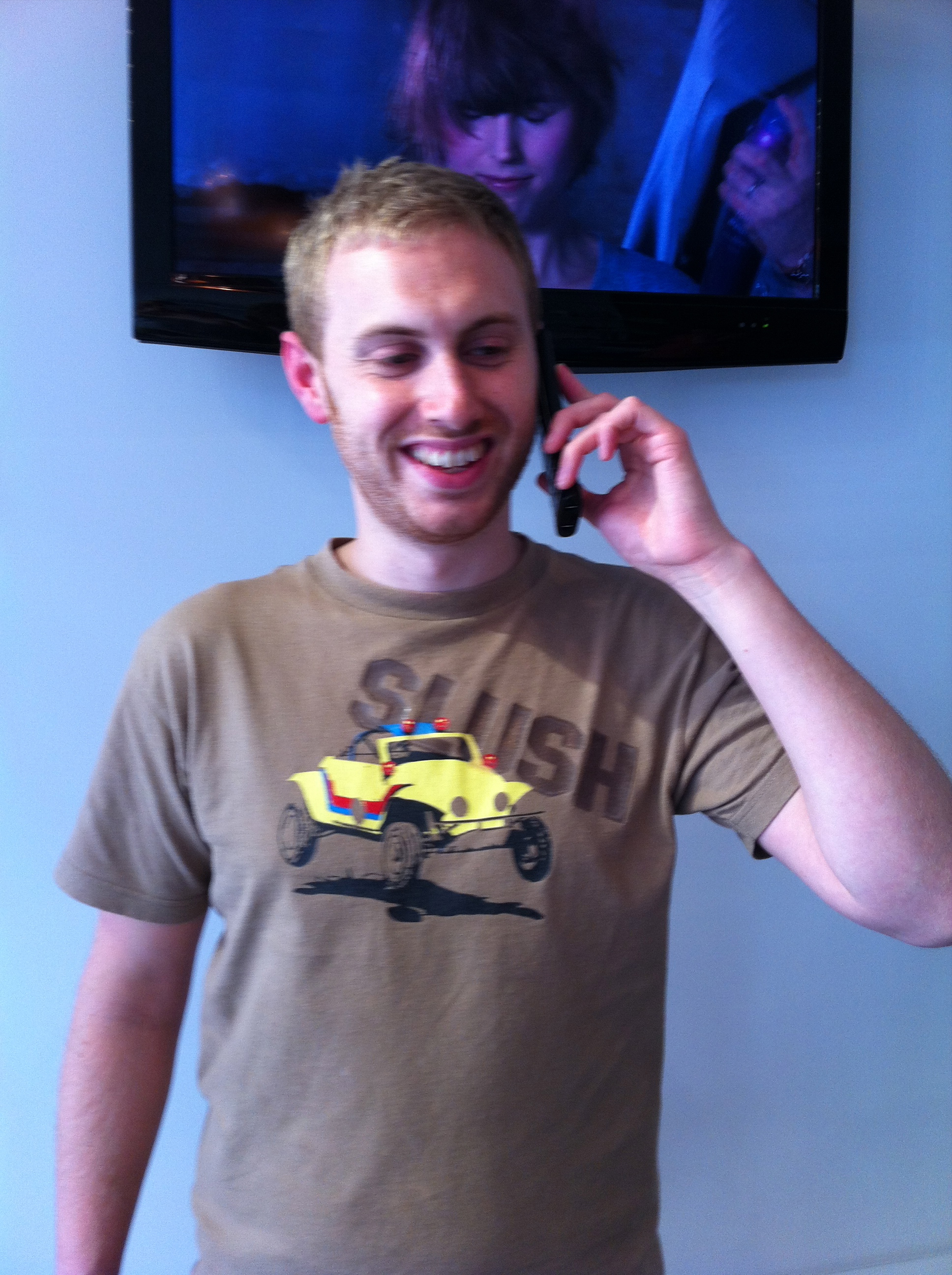 Great to see a Slush t-shirt on a recent visit to Skulduggery hairdressers. There was only one of this design ever made as I was experimenting with the use of a colourless print !